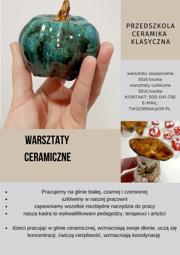 Nie czekaj! Przeżyj niezapomnianą przygodę z ceramiką. Zarezerwuj swoje miejsce na warsztatach już teraz i odkryj, jak wiele radości może przynieść tworzenie własnych dzieł. Czekamy na Ciebie!